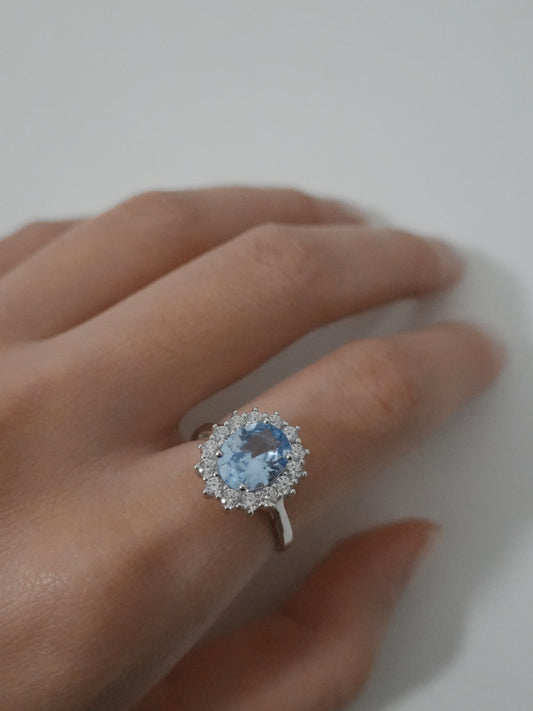 Anello Argento Regolabile Fiore Kate - Acquamarina