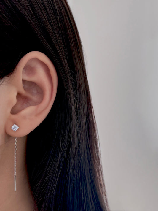 Direttamente dagli anni '90, gli orecchini saliscendi tornano più glamour che mai! Con la loro catenella passante per il lobo, sono facili da indossare e incredibilmente cool. Un gioiello mai statico, che danza ad ogni tuo movimento, regalando un tocco di luce e dinamicità. Fatti in argento 925 con zirconi super brillanti.