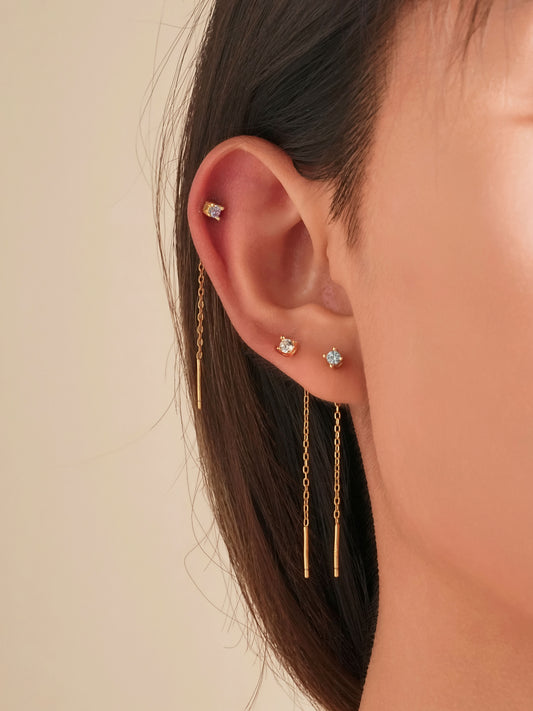 Orecchino Saliscendi Argento Punto Luce 4mm - Placcato Oro - Denim