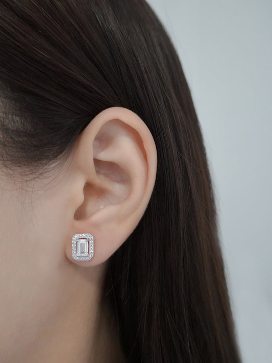 Silver Earrings Point Light Baguette Classy