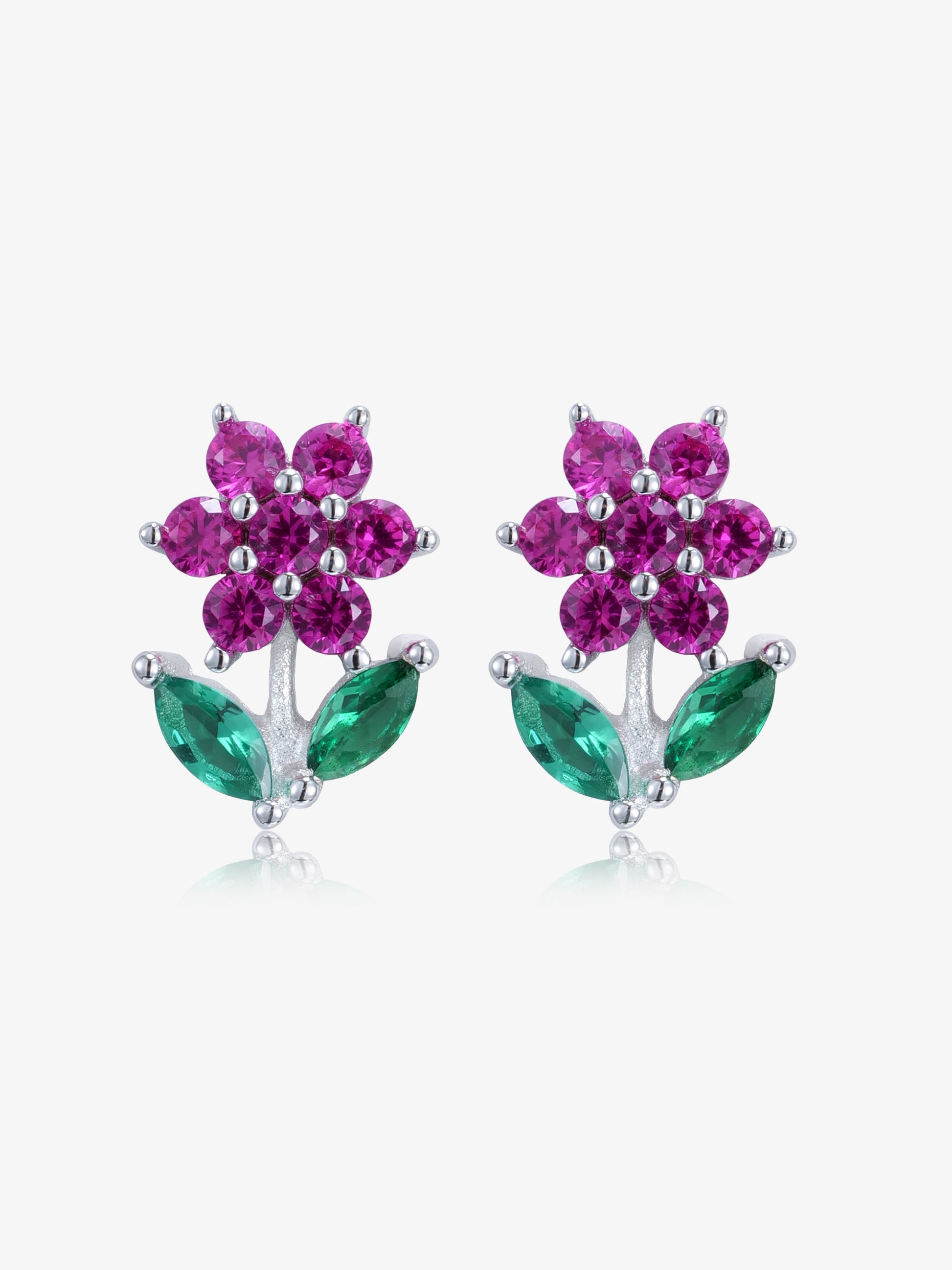 An explosion of color and joy! These flower-shaped earrings, crafted from 925 silver with fuchsia petals and emerald green leaves, are a celebration of carefreeness. Perfect for adding a playful and vibrant touch to your everyday look.