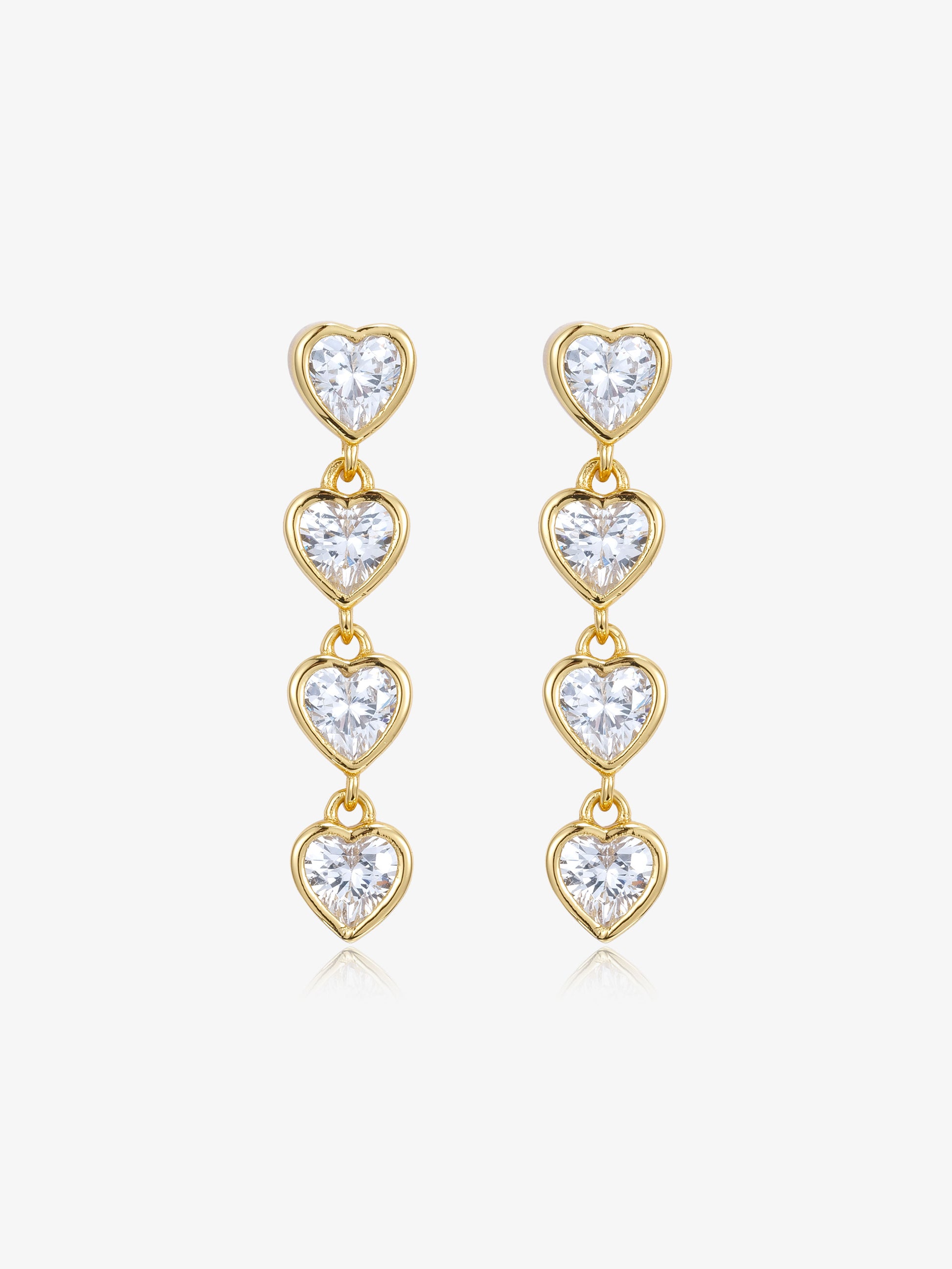 Four sparkling hearts, a single promise of light. Gold-plated and studded with cubic zirconia, these 925 silver earrings are pure magic: romantic, luminous, and ready to make you fall in love at first sight.