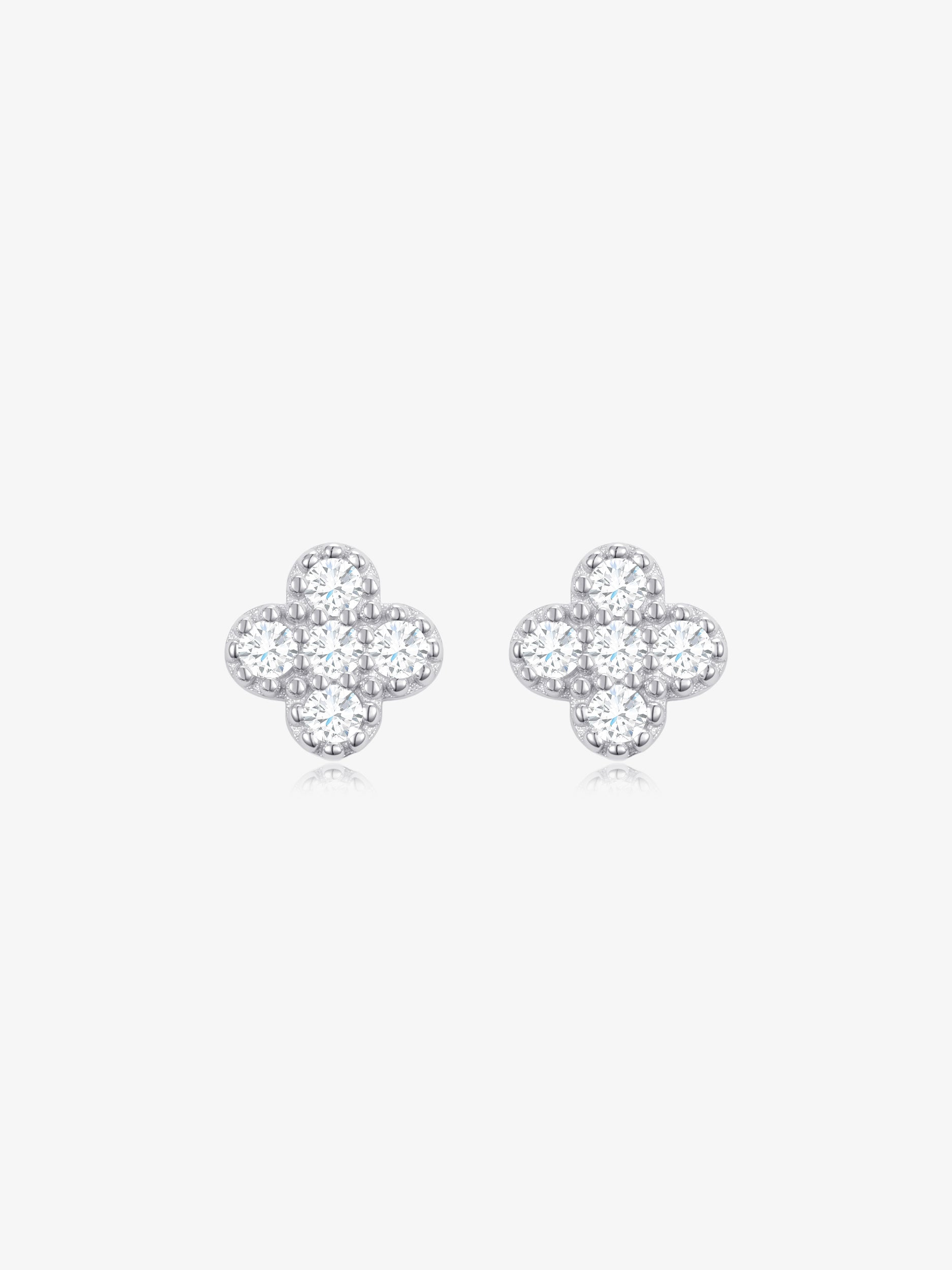 Small, delicate and irresistibly feminine, these four-leaf clover earrings in rhodium-plated 925 silver are the perfect detail for those who love a romantic yet sophisticated style.