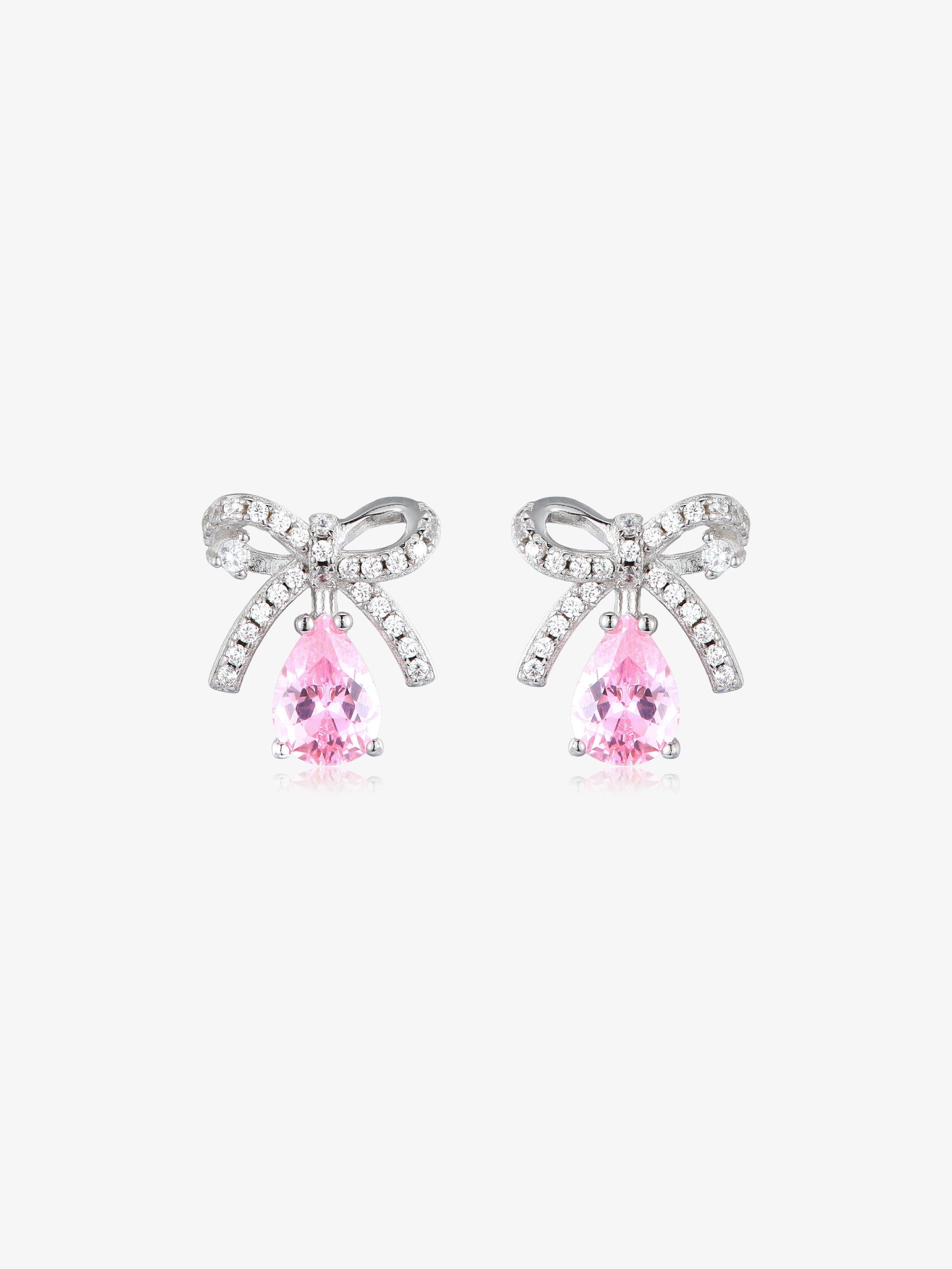 Romantic and refined, these bow-shaped earrings are embellished with a dazzling drop-cut pink zirconia. Perfect for adding a touch of sweetness and sparkle to your everyday look or a special occasion.