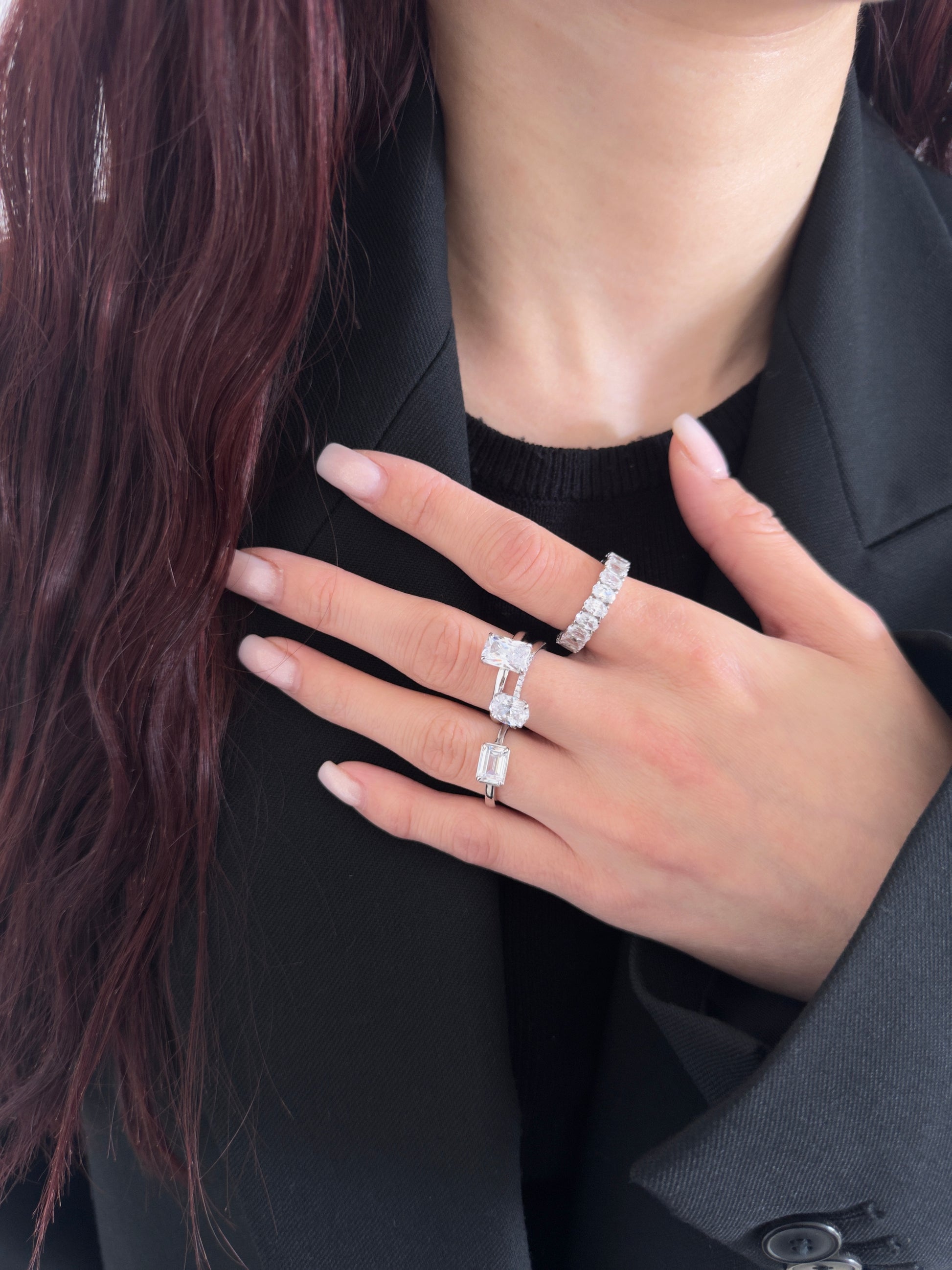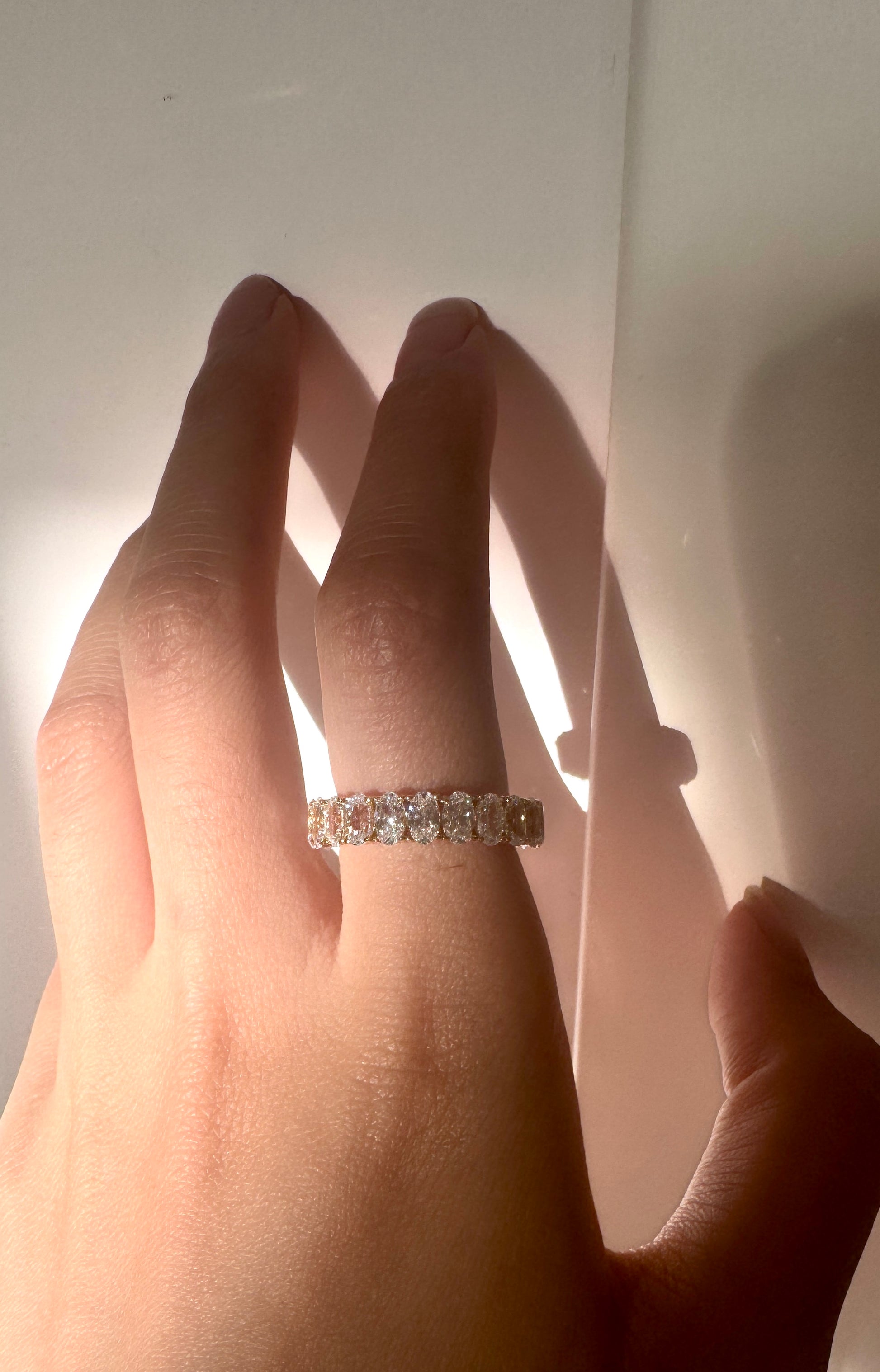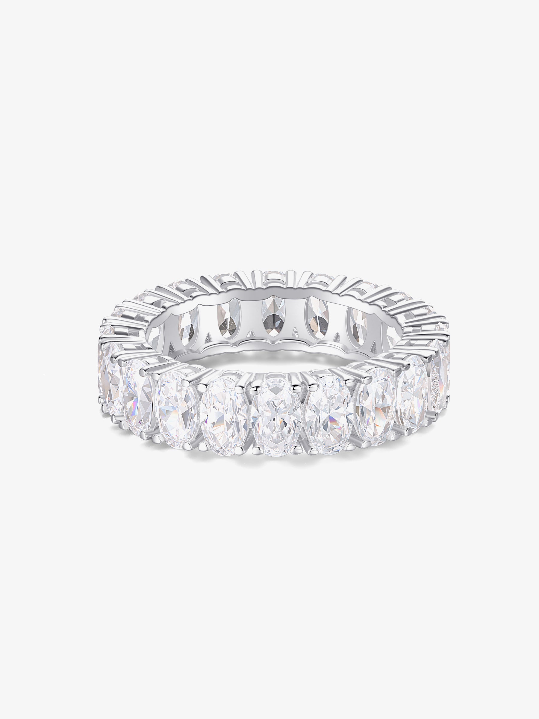 Un cerchio di luce che avvolge il dito con eleganza, questo anello eternity in argento rodiato incanta con la sua sequenza continua di pietre ovali. La perfetta simmetria delle pietre e la finitura brillante creano un effetto scintillante ad ogni movimento, ideale per chi ama uno stile raffinato ma versatile. Realizzato in argento 925 rodiato, garantisce luminosità duratura e si adatta con classe sia al giorno che alla sera. Un gioiello senza tempo che trasforma ogni gesto in un momento di pura eleganza, proprio un must-have.