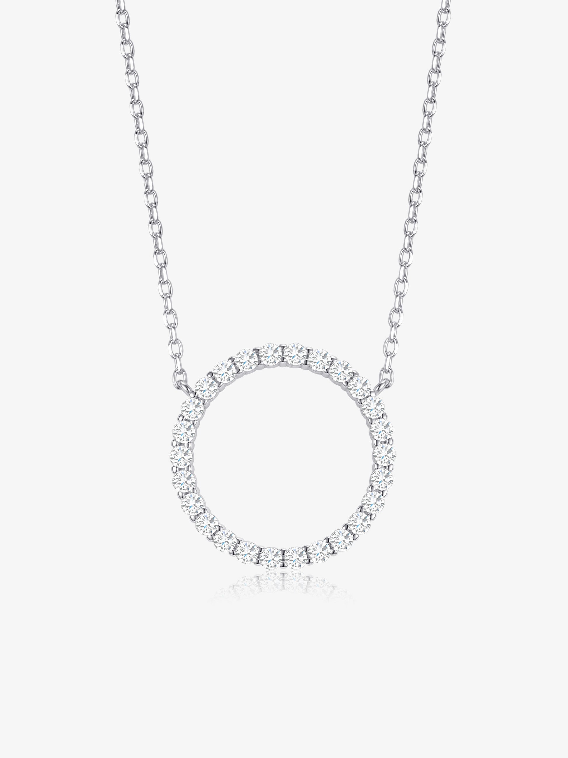 Eleva il tuo stile con la Collana Argento Cerchio. Il cerchio simboleggia la perfezione, e questa collana ti farà sentire perfetta in ogni occasione. Con i zirconi luminosi, si adatta a ogni look. Aggiungi un tocco di lusso e sofisticazione al tuo outfit con questa elegante collana.