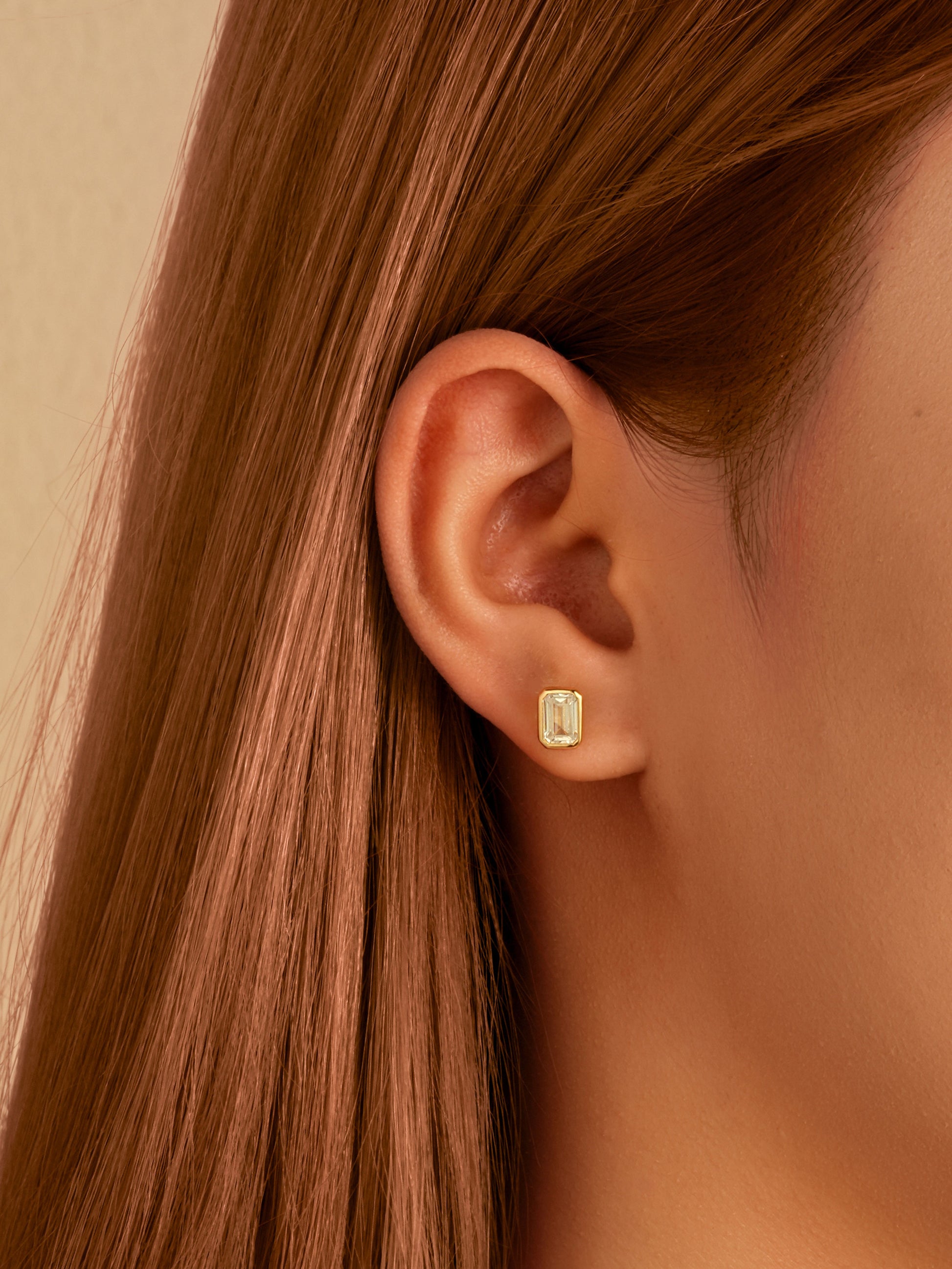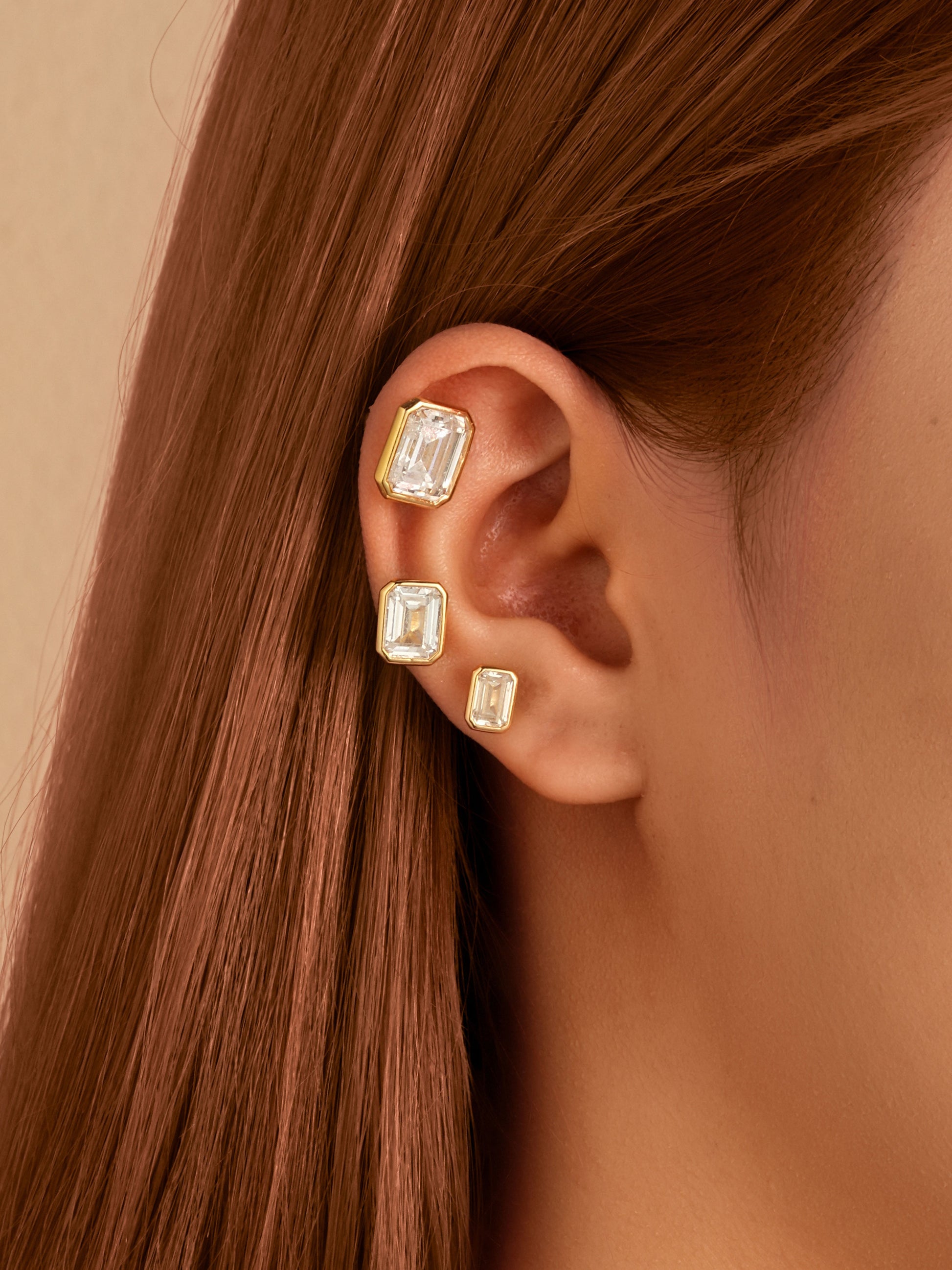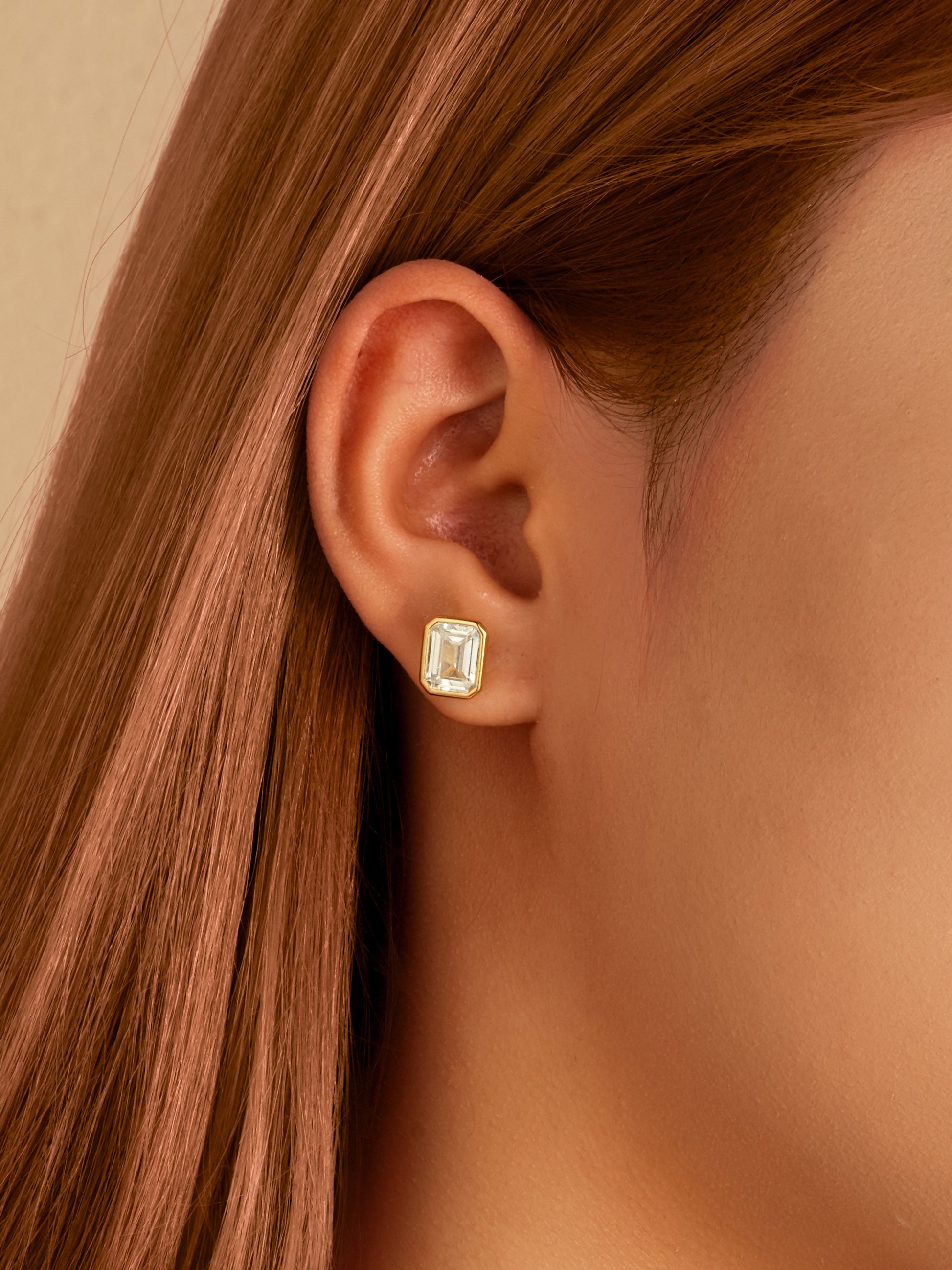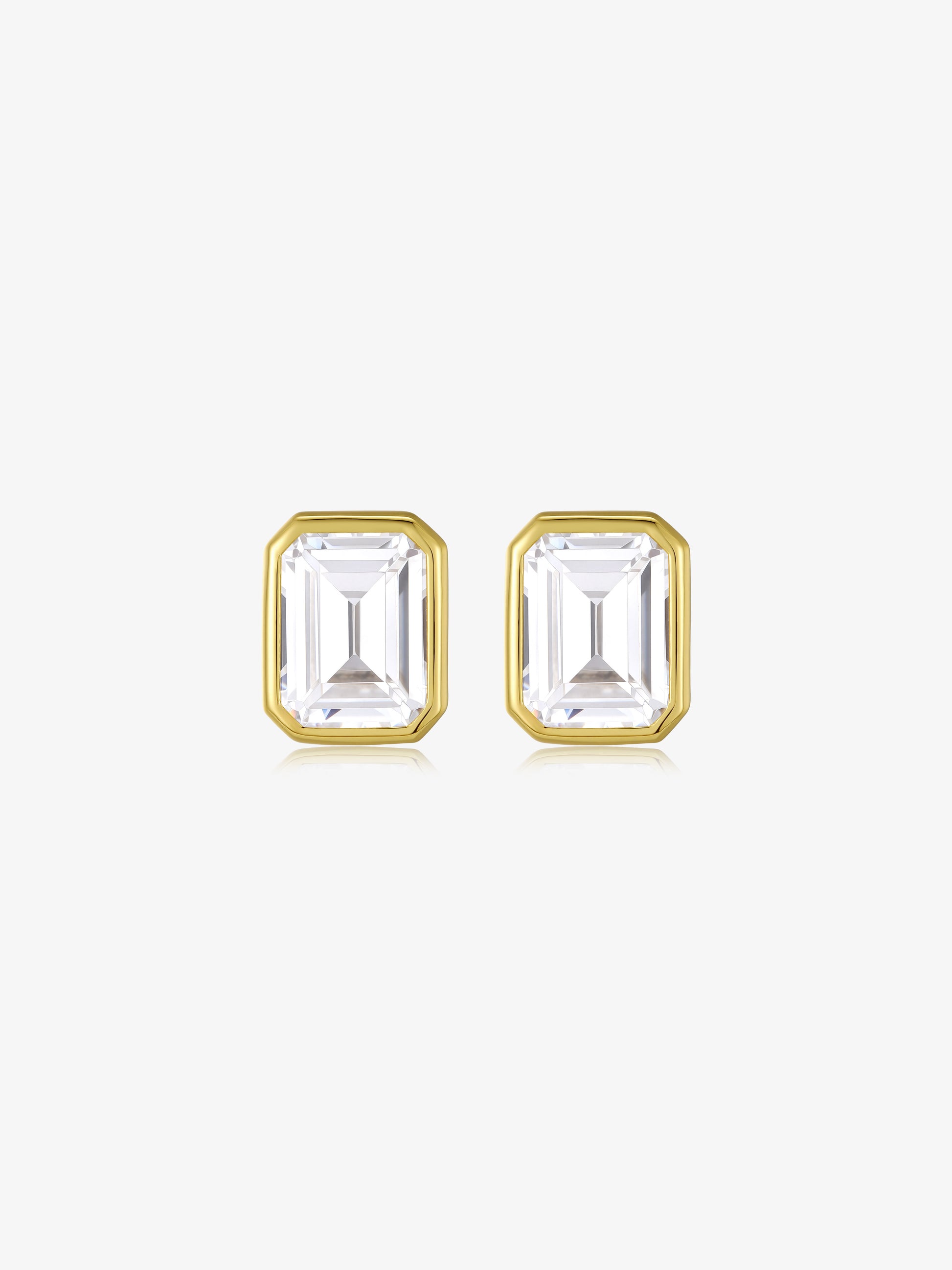 Scintillanti e raffinati, questi orecchini punto luce in argento 925 placcato oro sono un vero gioiello senza tempo. Il taglio smeraldo dei zirconi cattura la luce con eleganza, mentre il profilo dorato dona un tocco moderno e luminoso. Perfetti per ogni occasione, dal giorno alla sera.