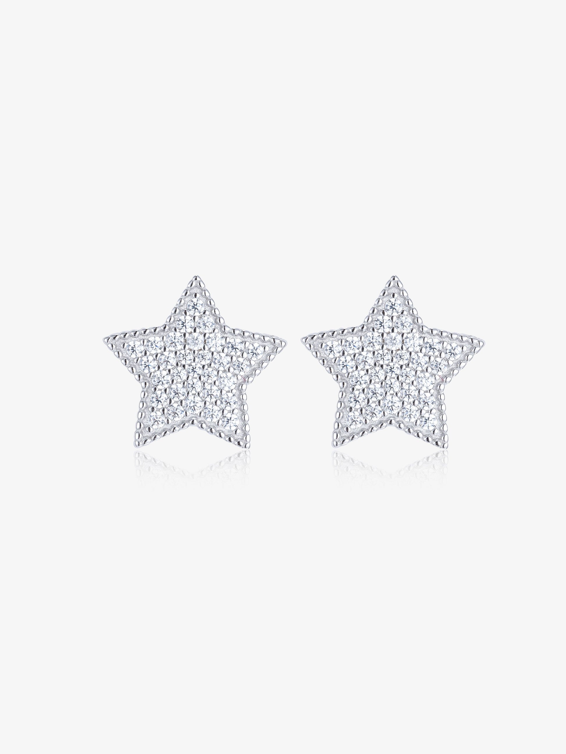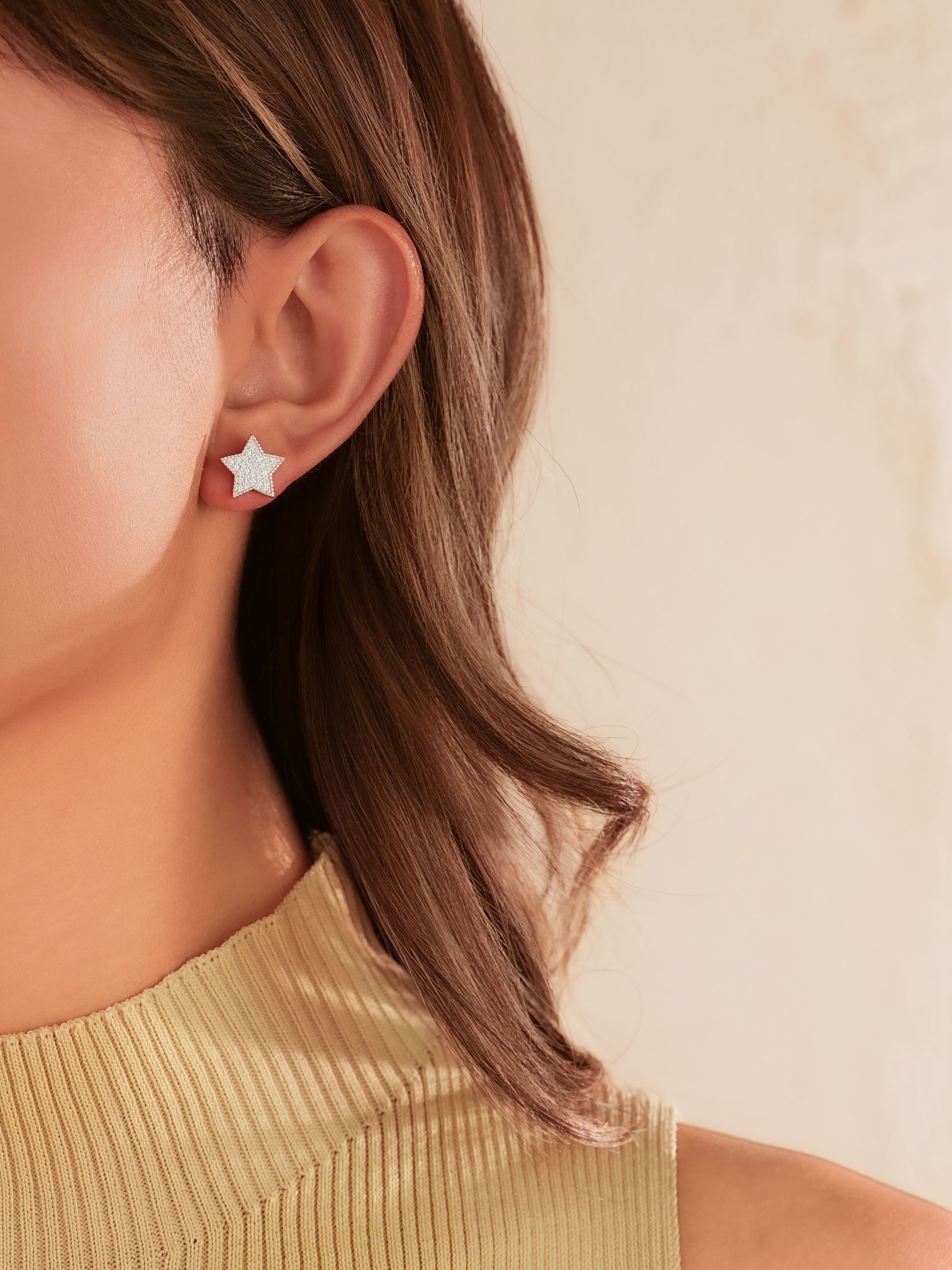 Questi orecchini a forma di stella in Argento 925 con pavé di zirconi bianchi sono l’accessorio perfetto per illuminare ogni tuo look. Audaci ma versatili, aggiungono un tocco di luce e carattere sia di giorno che di sera.