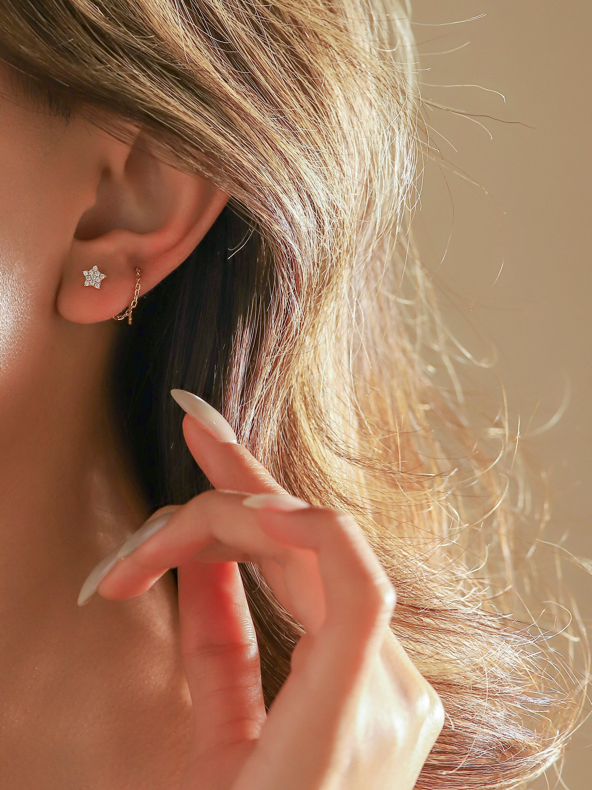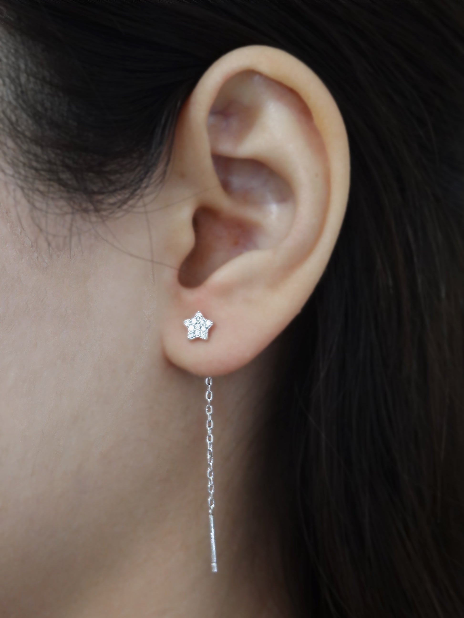 Brillano come stelle in una notte limpida: questo saliscendi unisce una catena fluente di 50 mm in argento 925 rodio a una stellina luccicante in cubic zirconia, regalando movimento ed eleganza chic.
